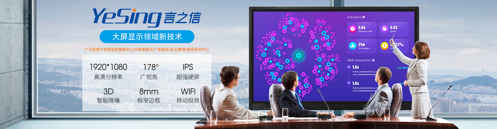 深圳言信電子科技有限公司是一家專業數字商用顯示設備集研發,生產,銷售和服務為一體的產品供應和顯示方案定制解決的科技企業。公司于2015年在成立深圳市言信電子科技有限公司,旗下擁有多家業務子公司。公司自成立以來一直恪守“誠信鑄就品質,創新引領未來”的經營理念,秉承“誠信、實惠、原創、信賴”的承諾,立足產業發展,放眼全球行業布局,以“共贏、共享”的經營方式,幫助客戶提升其行業競爭力。言信公司推出的“YeSing言之信”品牌商業顯示設備系列產品。攜手全球知名的LCD廠商致力打造高端,高性價比和優良的服務體驗的商業顯示設備和顯示工程方案供應商。核心系列產品主要包括:液晶拼接顯示屏、小間距高亮LED顯示屏、液晶監視器、室內外數字多媒體廣告機、觸控查詢一體機、教學和會議交互式一體機、透明液晶顯示柜和OLED多媒體設備等產品。產品通過和取得了3C、CE、FCC、RoSH、能效和ISO9001證書和測試報告,并獲得中國質量、服務、誠信5A級企業,質量檢驗、國家標準合格產品,中國名優產品等稱號。言信產品主要應用在政府機關、電力、能源、石油化工、軍隊、人防、公檢法、交通、通信等各企事業單位,也可以適用酒吧、酒店、KTV 、 商超,滿足客戶安防監控調度、應急指揮、展覽展示、教育培訓、會議等各行業顯示和宣傳需求。